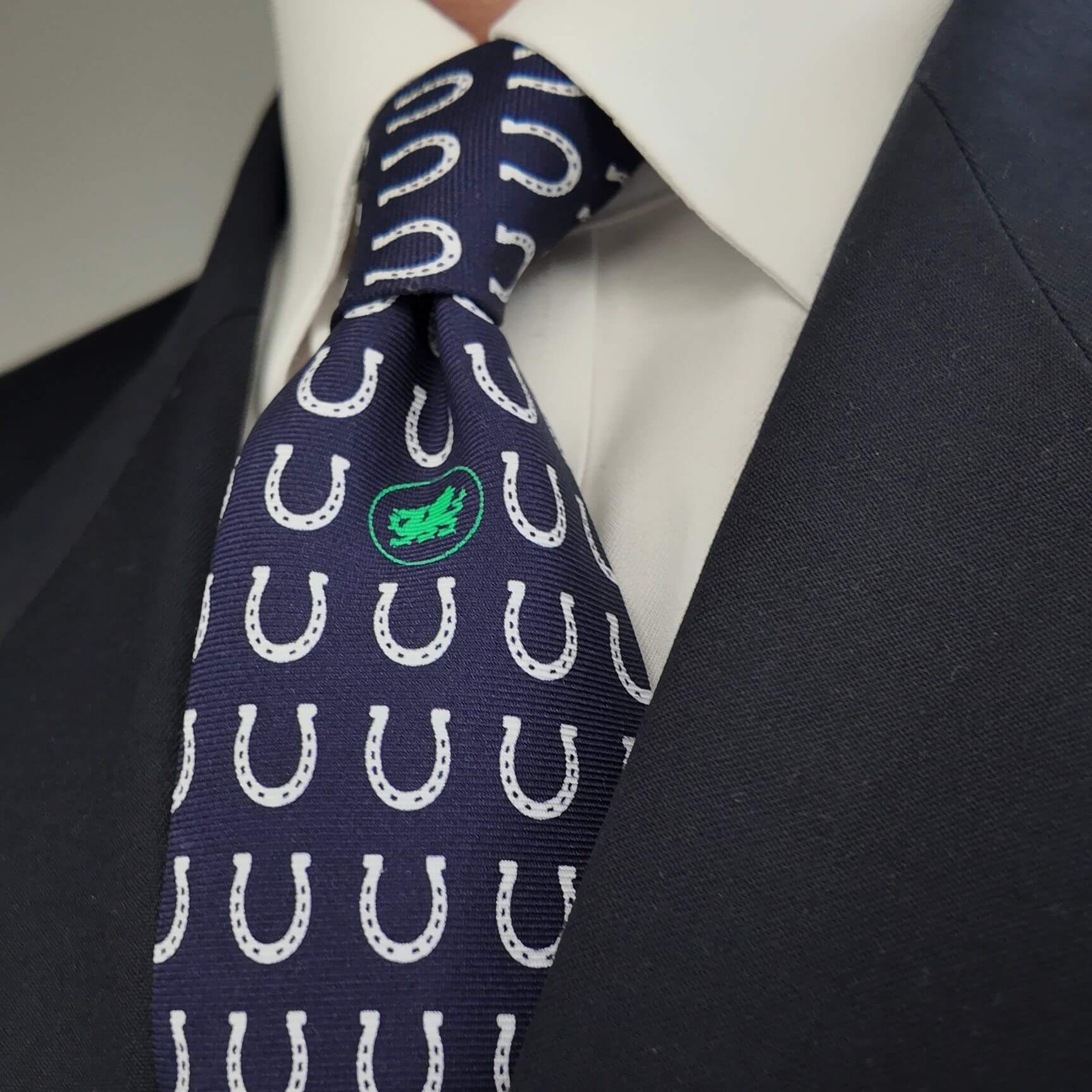 In 1990 at 100/1 odds a horse trained by a Welsh farmer managed to shock everyone and win the Cheltenham Gold Cup. That horse was called Norton’s Coin. This smart print features a repeating horseshoe pattern with a lucky coin in a green colour resembling that of Norton’s Coins jockeys cap. When designing this print the distribution of the coin amongst the horseshoe pattern was random, to reflect the unlikely victory.