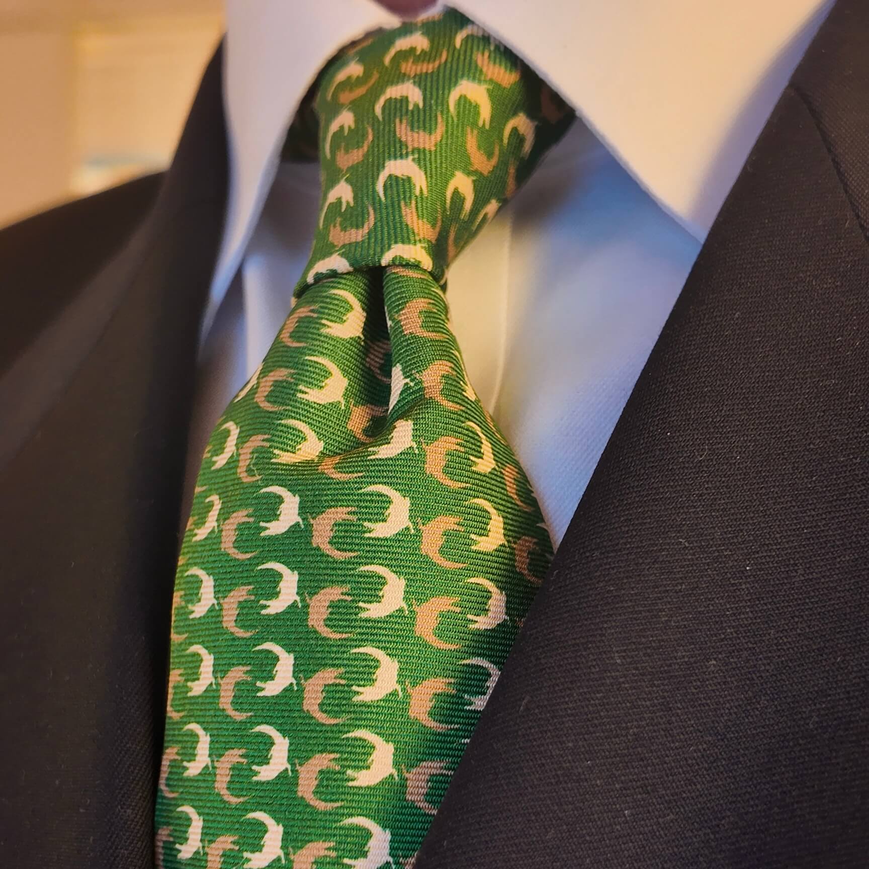 Introducing the Franc James Crocodile Print Tie in Moss green. This tie has been extremely popular for the crisp colours, printed on 100% silk.